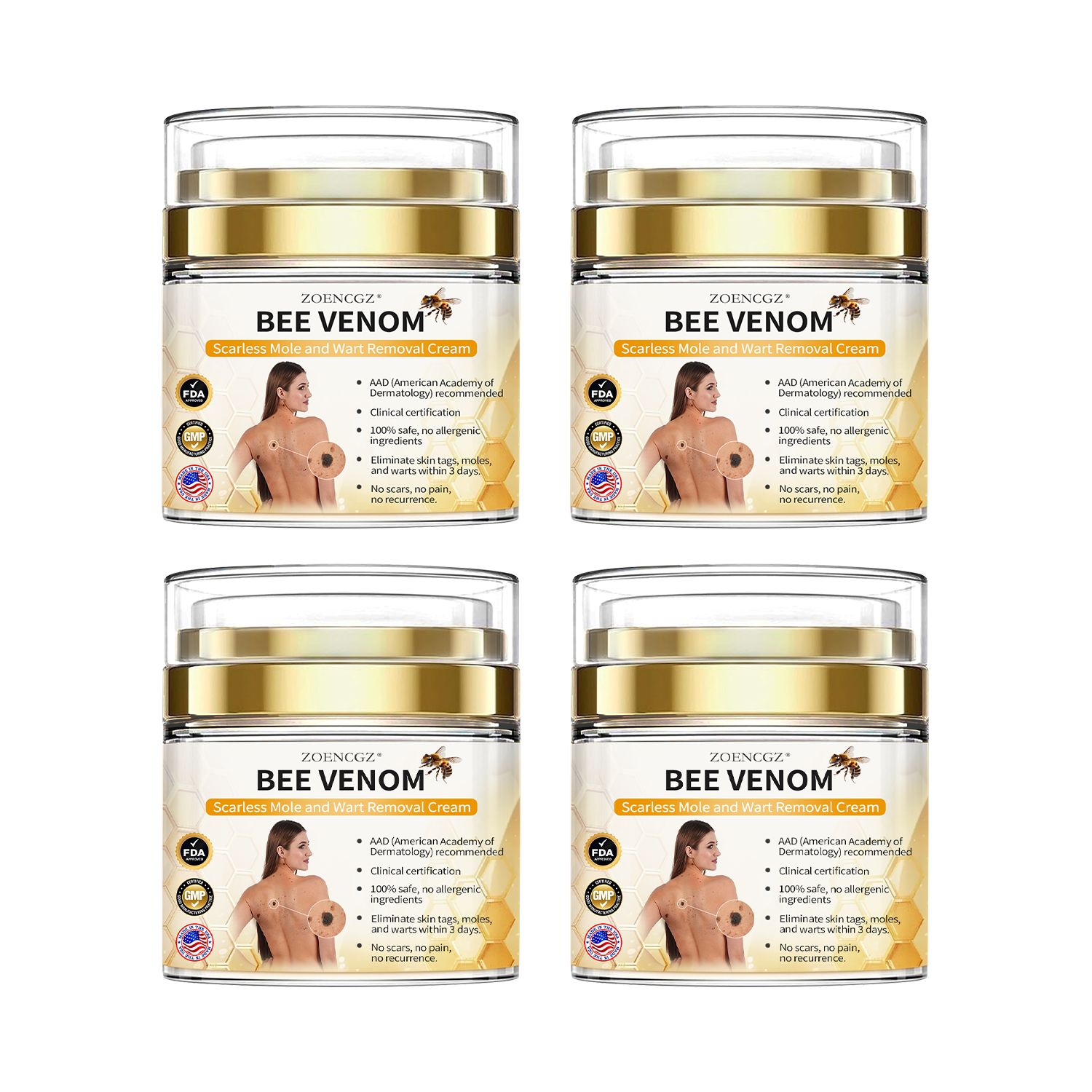 I have combined a variety of botanical ingredients that have long been shown to be beneficial in removing warts to create the Zoencgzβ’ Bee Venom Mole and Wart Treatment CreamΒ . Experimental evidence has shown this spray to be the best choice for treating warts. The blend of these ingredients, along with the powerful properties of bee venom, provides a breakthrough solution to treat warts completely from the root cause.